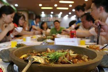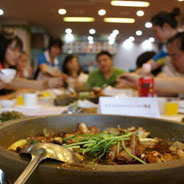 石鍋魚的選料:當(dāng)一份香、鮮、辣的石鍋魚吃凈之后,在來上幾分菜,涮著吃,味道及鮮美,有可以爽口,清淡易下味覺,在涮料中,最好吃有特色的涮料要當(dāng)屬手扯面,手扯面現(xiàn)場料理,在我們的面前親自扯面,然后放到石鍋中,慢慢的煮,魚湯,加上蔬菜,加上手扯面,那感覺絕對是你想象不出來的。 石鍋魚的主料選用草魚,選料很有講究。石鍋魚的魚片刀法要求非常高,刀工好的師傅,切出來的魚片看上去有長又厚,分量特別多。魚片在入鍋前都必須用油瀝過一遍。這時魚片都卷起來,如果選用的魚不是鮮活的,那么魚片都是直直的。等石鍋里高湯加熱到翻滾,放入魚片。 滾燙的石鍋慢慢地將魚片煲熟,慢慢地整個餐廳香氣撲鼻。店老板說,如果有四個石鍋同時上桌,那么整條馬路都會聞到石鍋魚的香氣。根據(jù)客人的不同喜好,店家還提供很多配菜,如黃豆芽、芽白、羊肉、蘿卜、藕片等等??腿丝梢栽诔酝瓴蒴~后加入配菜,也可以邊吃草魚邊加入配菜。味道都不會受影響。 |
