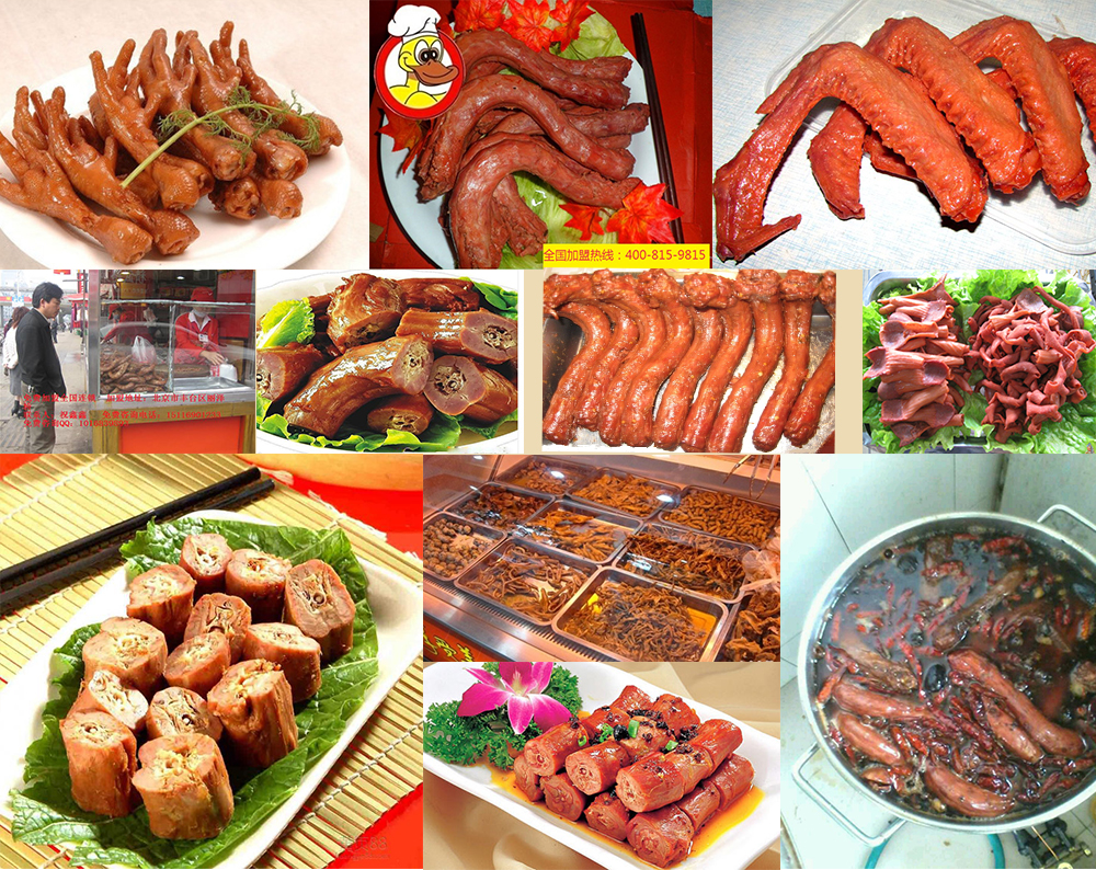 鴨系列:鴨脖、鴨頭、鴨掌、鴨翅、鴨腸、鴨心、鴨肝、翅尖、鴨舌、鎖骨、整鴨等。 雞系列:整雞、雞翅、雞爪、雞腿等。 豬系列:豬手、豬中蹄、豬耳、豬尾、豬肝、豬腸等。 牛系列:牛肉、牛肚、牛鞭、牛尾等。 素菜系列:豆腐、豆干、毛豆、花生、海帶、藕片及麻辣燙等。 其它產(chǎn)品:龍蝦、螃蟹、鵪鶉、兔肉、兔頭等。 學習者需要到北京總部免費參加培訓、轉(zhuǎn)讓費為2680元,培訓期間免費吃住。 學習期間每位學員都親自熬制老湯到下料、配藥、煎藥及鹵制全過程操作,直到你能獨立開店為止,讓每位學員都能夠真正掌握此技術(shù)。 開店前期的總投資在一萬元左右。產(chǎn)品毛利在50%以上,一個月即可收回投資并盈利。 (注:產(chǎn)品例:鴨頭、脖、翅、掌等都是分割好了的,國內(nèi)很多這樣的生產(chǎn)廠家。而不是要你買活鴨宰殺) |
