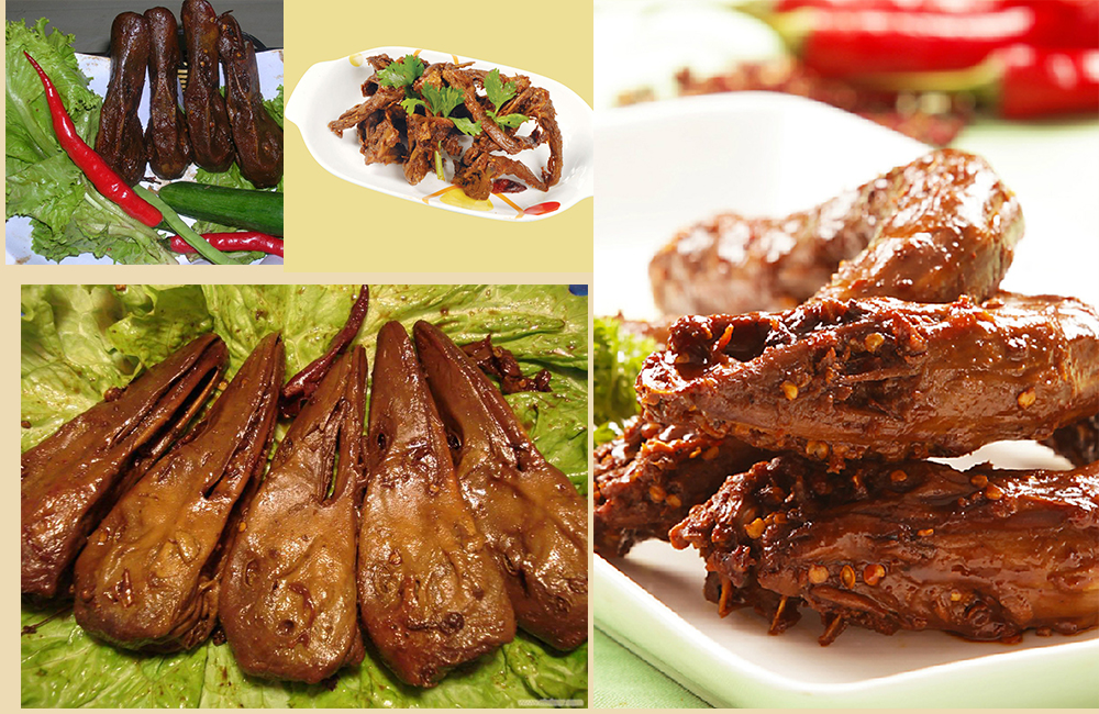 的全套技術(shù),函授費(fèi)用2000元。 周記黑鴨 學(xué)習(xí)的品種有: ◎整鴨系列:新一代周記黑鴨、新一代醬板鴨、新一代鹵全鴨。 ◎鴨付系列:鴨脖、鴨頭、鴨掌、鴨翅、鴨腸、鴨肝、鴨排、鴨鎖骨、鴨心、鴨食管、鴨舌等等。 ◎雞系列: